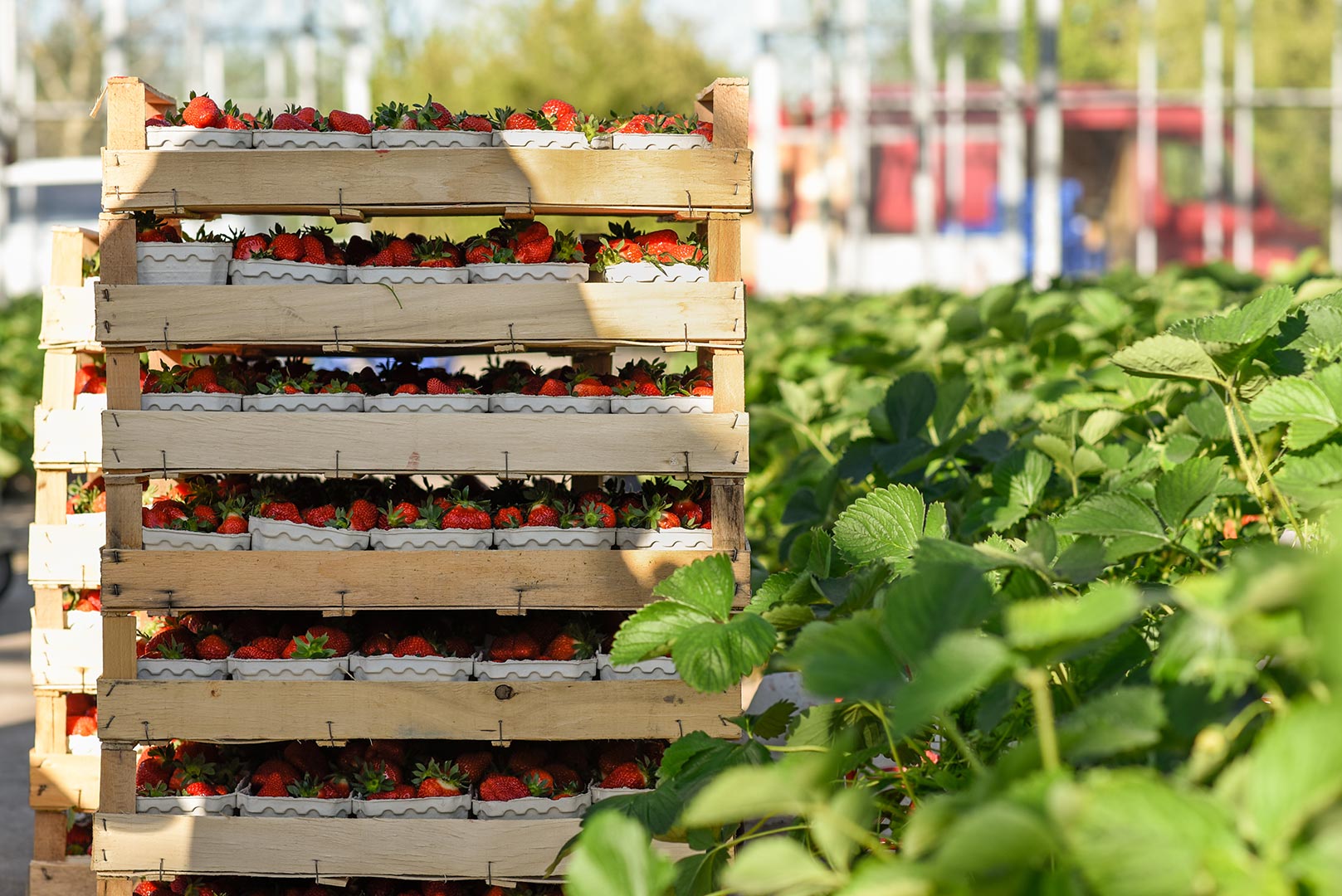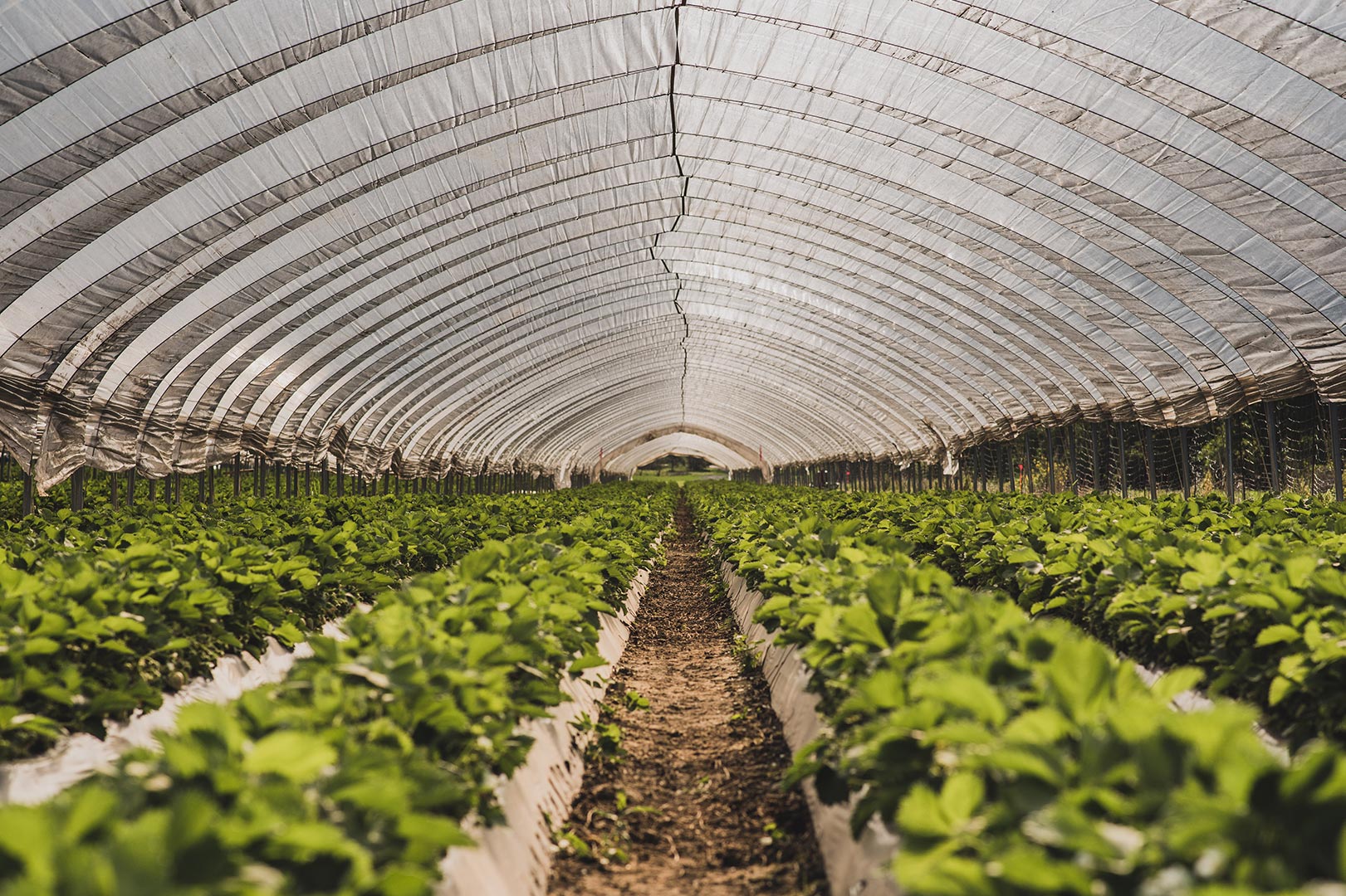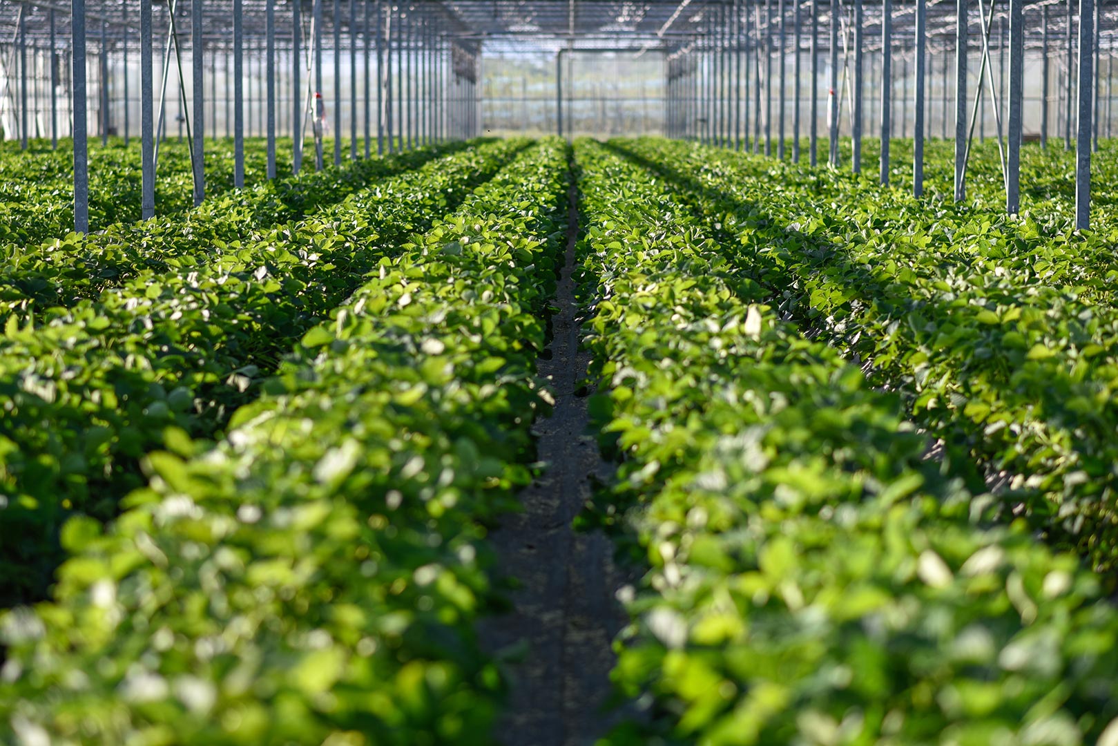 Unsere Erdbeeren wachsen bei uns in einem geschützten Anbau, zum Beispiel in unseren Glashäusern. Dadurch sind die Pflanzen gegen äußere Einflüsse abgesichert.
